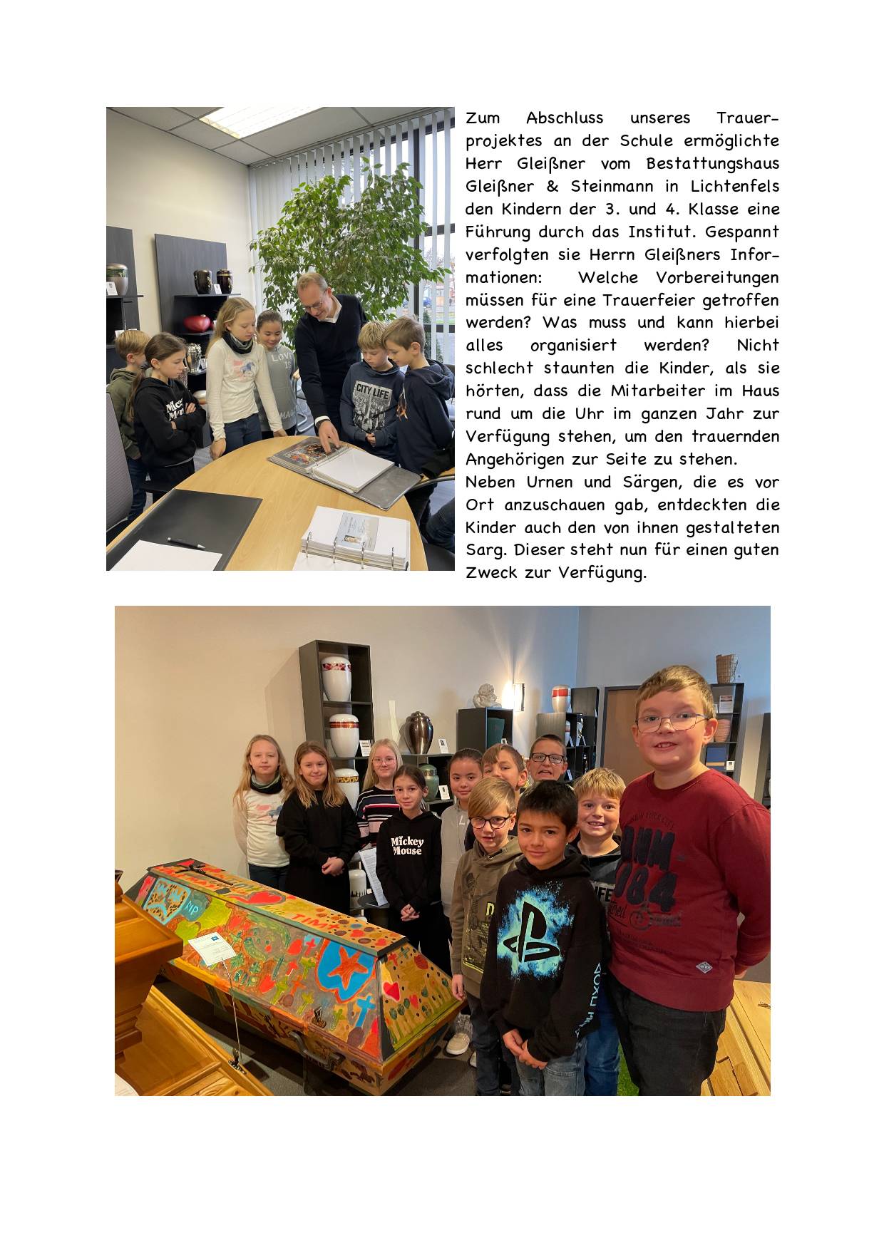 Das Bemalen des Sarges, der einem Bedürftigen zu Gute kommt, war das Projekt der Viertklässler.